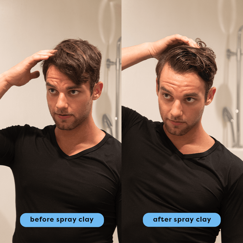we created a spray that complements hair with a clay-like hold and all-day cologne scent. you now don't have to use your fingers in a complex clay product and come out with “clay hands.”